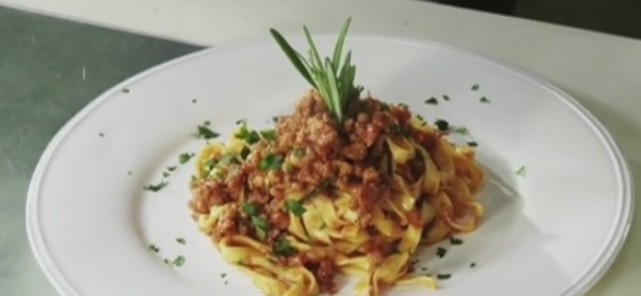 Špagety s česnekovým krémem a zapečenými rajčaty